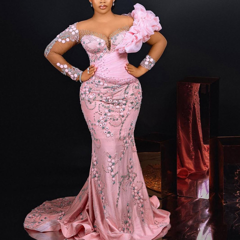 ชุดเดรสงานพรอมสไตล์ Aso EBI ประดับลูกปัดคริสตัลหรูหราขนาดพลัสไซส์ชุดเดรสต้อนรับงานแต่งงานสไตล์แอฟริกันชุดทางการสำหรับเด็กผู้หญิงสีดำประดับลูกปัดแวววาว