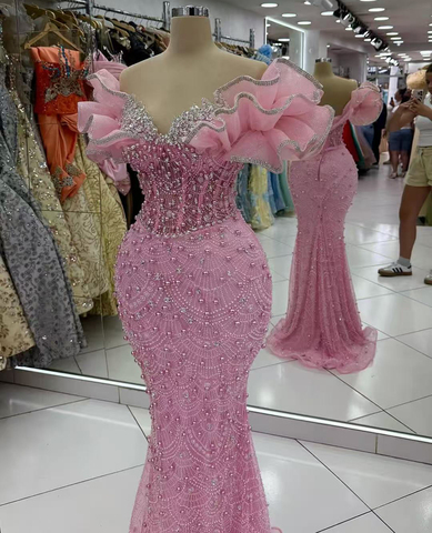 Abiti da Sera a Sirena con Spalle Scoperte, Decorati con Paillettes e Cristalli